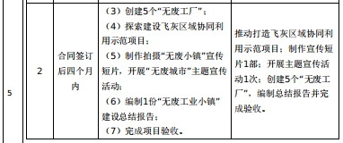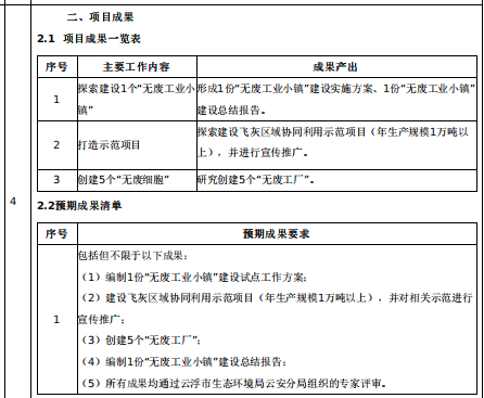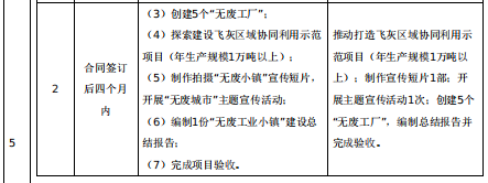 4.原采購文件中付款方式2期的進度款:支付比例50%,支付時間為完成以下工作且提供有效發票后十日內,支付合同總價的50%: (1)完成“無廢工業小鎮”建設試點工作方案的編制;(2)創建5個“無廢工廠”;(3)探索建設飛灰區域協同 利用示范項目。