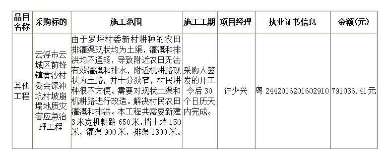 前鋒鎮羅坪村委新村排、灌渠及機耕路工程中標(成交)結果公告